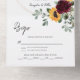 This fall rustic sunflower and burgundy roses country all in one wedding invitation with RSVP is perfect for a barn or ranch wedding. This invitation features watercolor yellow sunflowers with burgundy roses and baby's breath and sage eucalyptus greenery. This is a perfect color scheme for a late summer or fall wedding Make this invitation your own by including your names and all of your wedding details. The RSVP has the option to add meal choice if needed.