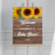 Introducing our charming Rustic Fall Sunflower Baby Shower Welcome Board, the perfect addition to your fall/autumn-themed celebration. This beautifully designed foam board features a warm and inviting fall theme with vibrant sunflowers that come from above as the focal point. The background is dark woody colored.