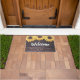 A rustic welcome doormat for your home that features a faux dark wood background, cheerful sunflower watercolors and your family name and year established.