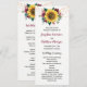 These wedding programs feature watercolor sunflowers, burgundy roses, foliage and string lights. The front of the card has the ceremony and the back of the card lists the bridal party. These wedding programs are part of a collection which includes a full range of matching wedding stationery that you can personalize for your wedding. Please visit the collection pages in our store to see the full range.