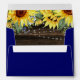 These blue custom envelopes feature a rustic sunflower design printed onto the inside liner. The beautiful watercolor sunflowers, string lights and barn wood are perfect for a country wedding or bridal shower.