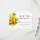 Rustic sprig of yellow sunflowers and white snapdragons decorates the left of this pretty floral RSVP card. An equally pretty yellow sunflower and white daisy wreath decorates the back. The wedding couple names are in the center divided by a romantic heart! This is part of the Sunflower and Daisy collection that contains many coordinating items that you can use to create a elegant and unique wedding stationery package.