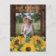 Rustic dark brown wood graduation Save the Date/Announcement postcard with colorful yellow sunflowers and space for your photo. Contact us for help with customization or to request matching products.