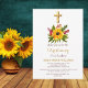 Rustic Sunflower Greenery Gold Cross Baptism Invitation