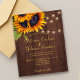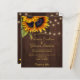 Rustic elegant affordable BUDGET summer or fall wedding stylish invitation template on brown barn wood featuring a beautiful sunflowers bouquet and strings of twinkle lights. ++++++++ The invitation is suitable for outdoor elegant spring summer fall rustic country budget weddings.++++++++++ PLEASE READ THIS BEFORE PURCHASING! This is a budget affordable wedding card printed on a paper sheet (each sheet has one card). ++++ For the best rapport price-quality, our advice is to choose the Semi-Gloss paper type (it is thick enough to be used for stationery) ++++ If you need envelopes, choose the ENVELOPE OPTION. +++ Double-check all the information and spelling of your text because you will receive exactly what you see - no one else will check anything before printing. ++++ This card is designed for size 4.5" x 5.6". In the case you choose another size of the card and text goes outside page, everything needs to be fixed before adding the product to cart. Please ask Live Design Service for help.
