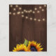 Rustic elegant affordable BUDGET summer or fall wedding stylish invitation FLYER template on brown barn wood featuring a beautiful sunflowers bouquet and strings of twinkle lights. ++++++++ The invitation is suitable for outdoor elegant spring summer fall rustic country budget weddings.++++++++++ PLEASE READ THIS BEFORE PURCHASING! This is a budget affordable card printed on a FLYER. ++++ Please note that BUDGET PAPER IS THIN - You can upgrade to have this card printed on cardstock ++++ ENVELOPES NOT INCLUDED. +++ Double-check all the information and spelling of your text because you will receive exactly what you see - no one else will check anything before printing. ++++ This card is designed for size 4.5" x 5.6". In the case you choose another size of the card and text goes outside page, everything needs to be fixed before adding the product to cart. Please ask Live Design Service for help.