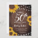 Rustic Sunflower & Lights Surprise 50th Birthday Invitation