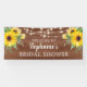 This bridal shower banner features a rustic sunflower design with string lights and wood. Personalize it with your text.