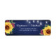 These address labels feature a rustic sunflower and burgundy floral design with a navy blue background and mason jar string lights . Use them on your wedding invitation envelopes. Personalize these labels by adding your own address. These labels are part of a collection which includes matching wedding stationery and gifts. Please visit our store to see the full range of products that you can personalize for your wedding.