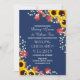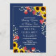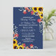Rustic Sunflower Navy Blue Wedding Invitations