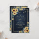 Rustic Sunflower Navy Blue Wood Floral Wedding Invitation