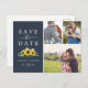 This rustic sunflower navy photo collage save the date postcard is perfect for a country wedding. The bohemian floral design features yellow sunflowers, blush pink flowers and hunter green eucalyptus greenery in watercolor with an elegant modern boho feel.