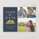 Rustic Sunflower Navy Photo Collage Save the Date Invitation Postcard