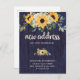 This rustic new address postcard features pretty watercolor sunflowers in colorful shades of yellow and gold, with green leaves, and casual typography on a navy blue, wood look background. You can add a personal message to the back. The perfect way to let friends and family know that you have moved.