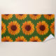 This rustic sunflower pattern minimal farm house style beach towel features big bold bright orange and brown sunflowers scattered on a green background that make the colors pop. It is perfect for sunny summer days on the beach or poolside.