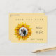 Elegant wedding save the date postcard featuring a yellow gold sunflower with your photo inside, the bride and groom's names, date, and website over a cream peach background. ++++ Easy to personalize on both sides! ++++++++++ Suitable for modern rustic country summer or autumn fall outdoor backyard, garden, barn or farmhouse weddings. ++++++ Please note that the colors are changeable. If you need to customize it in a specific color of text and/or background, please contact the designer through the MESSAGE button below.