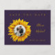 Elegant wedding save the date postcard featuring a yellow gold sunflower with your photo inside, the bride and groom's names, date, and website over a purple plum background. ++++ Easy to personalize on both sides! ++++++++++ Suitable for modern rustic country summer or autumn fall outdoor backyard, garden, barn or farmhouse weddings. ++++++ Please note that the colors are changeable. If you need to customize it in a specific color of text and/or background, please contact the designer through the MESSAGE button below.