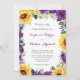 Plain white envelopes are included with paper invitations and will come to fit the invitation size you select. If you don’t need the envelopes, you may choose to not receive them by selecting the dropdown below "Envelopes" and choosing "None." If you’d like to have a design on your envelopes, you can browse all of these available envelopes to find the design that complements your Rustic Sunflower Purple Floral Wedding Invitation.