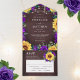 Rustic Sunflower Purple Roses Lights Wedding All In One Invitation