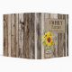 Rustic wood planks background with sunflowers in mason jar with burlap recipe book.