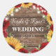 Rustic Sunflower Rose Wood Background Wedding Classic Round Sticker