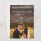 The front showcases your favorite wedding or engagement photo, creating a meaningful and personal keepsake for your guests. Accented with a charming arrangement of sunflowers, deep burgundy roses, and soft greenery, the design captures the warmth and joy of your special day. Elegant script typography adds a soft, timeless touch, highlighting your names and wedding date with understated sophistication.