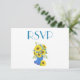 Featured here is a lovely sunflower themed RSVP invitation. Great for the sunny months of Spring and Summer, this RSVP features a white background with sunflowers inside of a blue and white polka dot rain boot. "RSVP" is displayed at the top with lovely font. The back has the details on a light blue background. Customize as you wish.