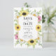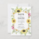 Announce your big day in rustic elegance with this watercolor sunflower save the date card. Featuring hand-painted sunflowers, daisies, and greenery with modern gold typography, it's perfect for country, barn, or fall weddings. The bright floral artwork adds charm, while the customizable layout makes it uniquely yours. Make a lasting impression—save your date in style!