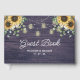 Rustic Sunflower String Light Wooden Guest Book