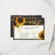 Rustic autumn sunflowers wedding invitation response card with meal options on a dark brown barn wood like background with strings of twinkle lights.