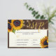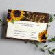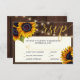 Rustic autumn sunflowers wedding invitation response card with meal options on a brown barn wood background with strings of twinkle lights.