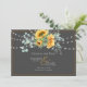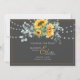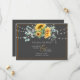 The simple, elegant nature of this save the date is perfect for your special day. This design features a charcoal gray background, sunflowers, string lights, and custom typography.