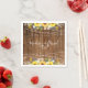 Rustic Sunflower String Lights Wedding Napkin. This design features pretty sunflowers against a rustic wood background with sparkling string lights. Personalize this custom design with bride and groom name, and wedding date.