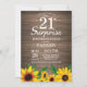 Rustic Sunflower Surprise 21st Birthday Invitation