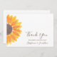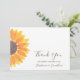 This thank you card features an original watercolor painting of a yellow sunflower on a white background with dark brown text.