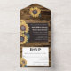 Invite guests to your upcoming wedding with a Rustic Sunflower All in One Wedding Invite. Invite design features watercolor sunflowers against a wooden rustic background. Personalize with the groom and bride's names along with the wedding date and location. Additional wedding stationery available with this design as well.