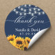 Rustic Sunflower Wedding Navy Blue Thank You Classic Round Sticker