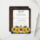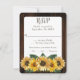 Send guests a simple and elegant Rustic Sunflower Wedding RSVP Card with your invitation. Response card design features a rustic wooden background with an elegant bouquet of sunflowers. Personalize with the response date and menu choices. Additional wedding stationery available with this design as well.