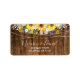 Rustic Sunflower Wedding String Lights Wood label. This design features pretty sunflowers against a rustic wood background with sparkling string lights.
