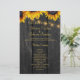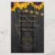 Elegant rustic budget wedding ceremony program template featuring beautiful bright yellow orange sunflowers and strings of twinkle lights on a country style dark brown wooden background. +++++++++++ + Personalize it with your your details! +++++++++++ Suitable for rustic country vintage chic summer garden autumn fall outdoor backyard or farmhouse weddings.