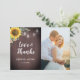 These wedding thank you cards feature rustic sunflowers, wood and mason jar string lights. Personalize it with your own wedding photo, names and wedding date text.