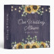 Rustic Sunflower Wood String Light Wedding Album 3 Ring Binder