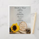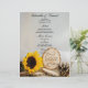 Customize the charming and elegant Rustic Sunflower Woodland Wedding Menu with the details of the meal that you will serve at your wedding dinner or luncheon by adding the salad or first course, entree or second course and dessert or third course. Personalize it with the names of the bride and groom, reception location and marriage ceremony date. Feel free to change the text or font to suit your nuptial needs. This rustic chic custom woods or forest inspo wedding menu features a quaint nature style photograph of a yellow sunflower blossom, wood slices with the word LOVE on it, brown pine cone and white bridal veil with a burlap and white satin background. Perfect for the couple who is planning a casual yet classy natural outdoor woodland wedding theme.