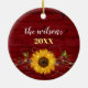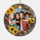 Rustic Sunflower Wreath Family Photo Christmas Ceramic Ornament