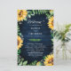 Elegant and modern rustic country wedding program features bright yellow sunflower blossoms and baby's breath / gypsophila floral frame with leaves on navy blue barn wood background. Please find more matching designs and variations from my "blissweddingpaperie" store. And feel free to contact me for further customization or matching items