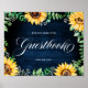 Elegant and modern rustic country wedding please sign our guestbook poster features bright yellow sunflower blossoms and baby's breath / gypsophila floral frame with leaves on navy blue barn wood background. Please find more matching designs and variations from my "blissweddingpaperie" store. And feel free to contact me for further customization or matching items.