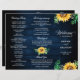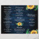 Elegant and modern rustic country tri-fold wedding program features bright yellow sunflower blossoms and baby's breath / gypsophila floral frame with leaves on navy blue barn wood background. Please find more matching designs and variations from my "blissweddingpaperie" store. And feel free to contact me for further customization or matching items.