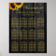 Elegant rustic country wedding seating chart PRINT template with 12 predefined gold script tables (120 guests) on a dark brown barn wood background featuring a chic sunflowers bouquet. +++++++++ Personalize it with your details and bride's and groom's names! +++++++++++ If you need help in accommodating to your guests number, please contact me!