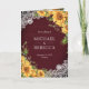 Rustic Sunflowers Burgundy Wood QR Code Wedding Invitation
