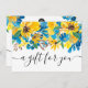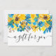 Rustic sunflowers floral chic gift certificate with painted yellow sunflowers, blue floral blooms, bouquet floral watercolor. Add your logo and social media.